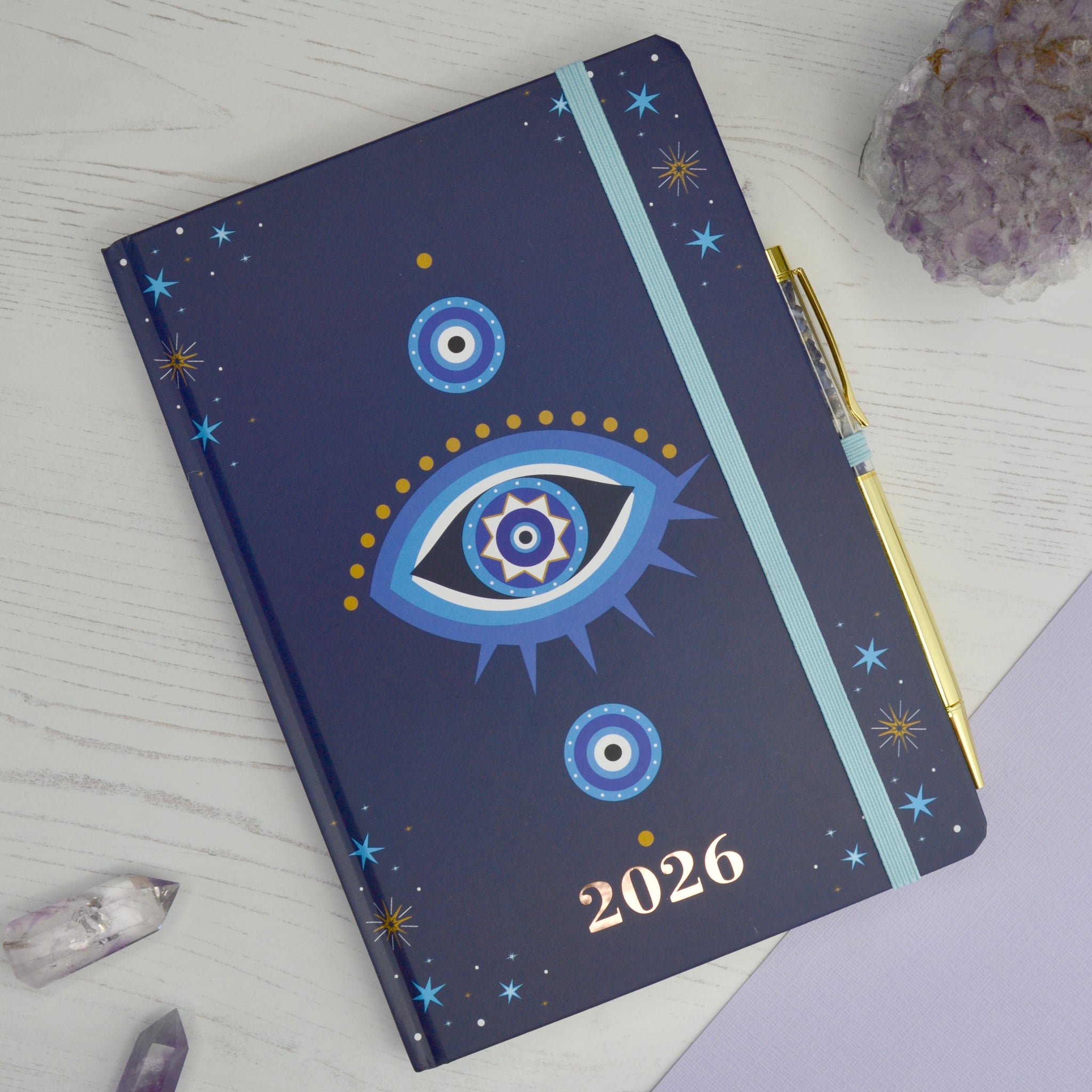 This Evil Eye / All seeing eye A5 notebook and Crystal Pen is designed to inspire your daily journaling, reflection, and self-care practices. Whether you’re tracking gratitude, setting intentions, exploring tarot, manifesting your dreams, or just writing your Daily To Do list, this notebook is your perfect companion.